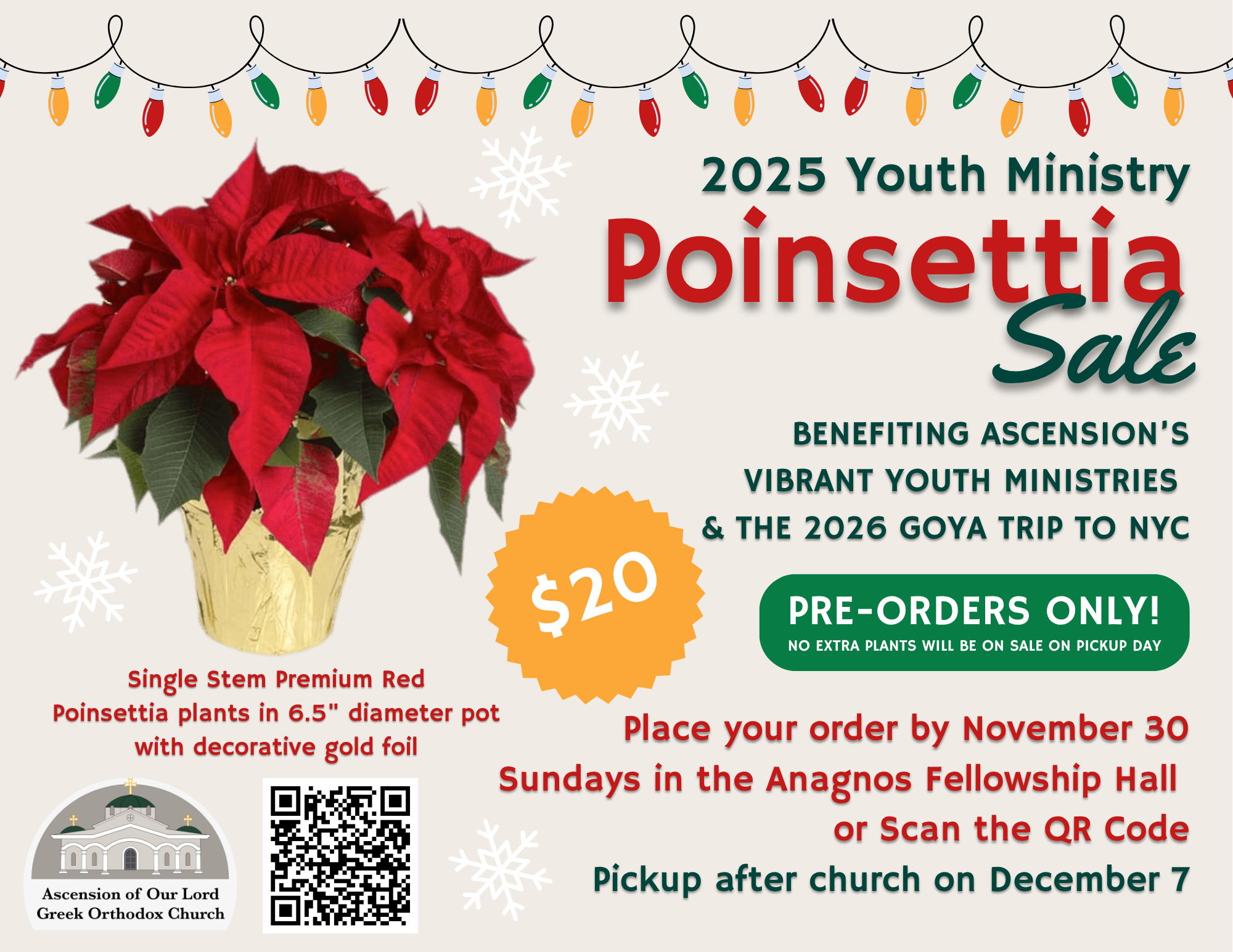 WE’RE MAKING A LIST, CHECKING IT TWICE! It’s time to reserve your seats for Christmas Breakfast with Santa, following Divine Liturgy on Sunday, December 7. Calling Moms & Dads, Yiayias & Papous, Nounas & Nounos! You won’t want to miss this special tradition with your young ones! Space is limited, so make your reservations early.