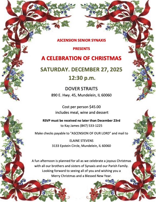 Join the many families of our Parish in expressing Christmas greetings to all members and friends of our Ascension Church. Please complete the form below either online or by printing and sending to the office no later than Monday, December 1st.