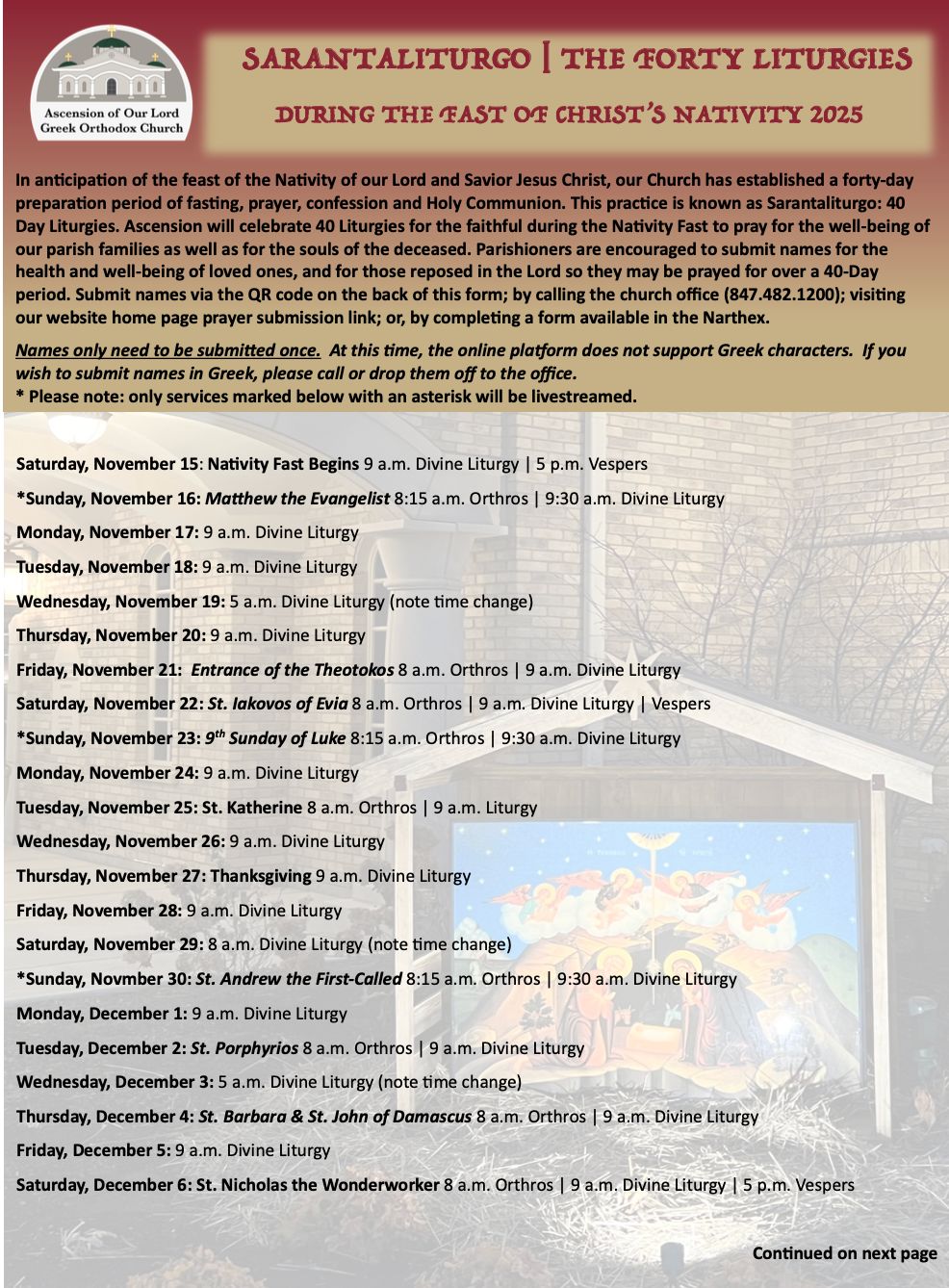 For Orthodox Christians, please write the Baptismal name, or name given at Chrismation. (For example: For example, rather than Tom, write Anastasios; for Pat, write Patricia or Panayiota.). If the person is not Baptized or Chrismated in the Orthodox Church, please write their name in its most formal version (For example: rather than Tony, write Anthony; Kimberly rather than Kim, Richard rather than Rick.)