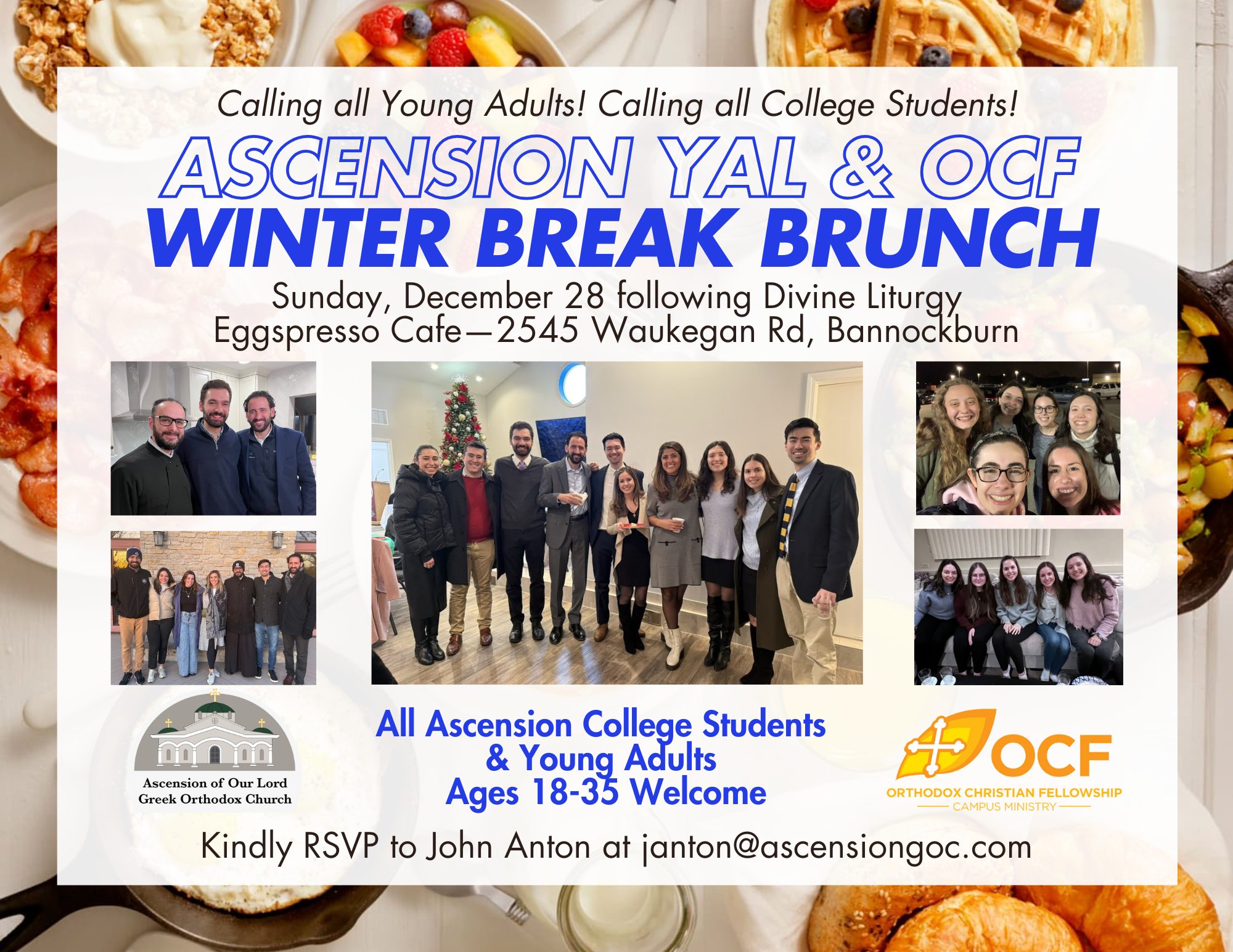 CALL FOR COLLEGE STUDENT CONTACT INFO: We wish all of our college students good strength as they settle into their college years. If you are a parent of a current college student, we would like to get their contact information so we can keep in touch with them and send pastoral messages and reflections, as well as information about conferences, scholarships, online resources, camp counselor opportunities and the Orthodox Christian Fellowship ministry (OCF). Please email John Anton (janton@ascensiongoc.com) with your student's contact information (name, year in school, cell phone, email address & college/university). Thank you!.